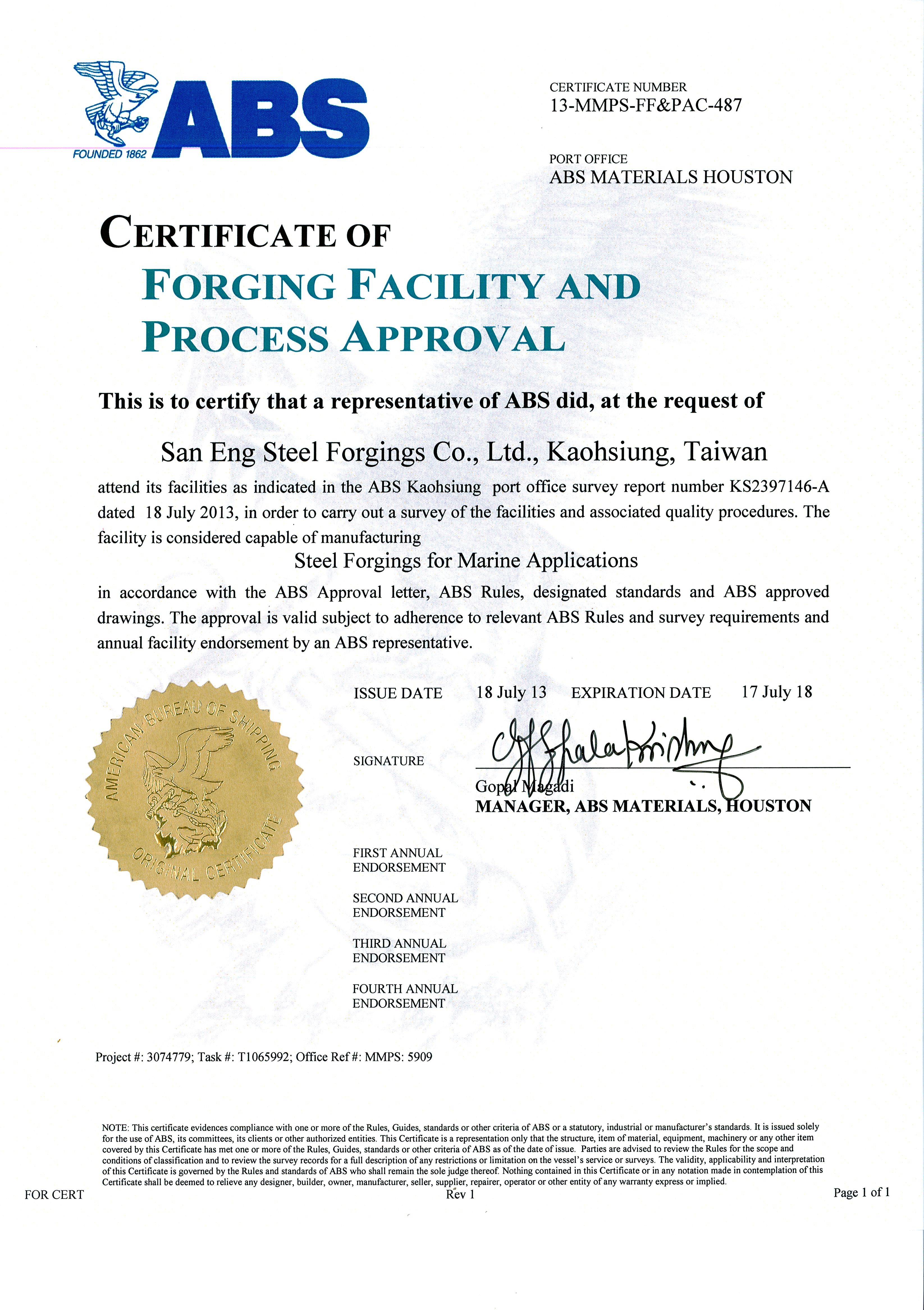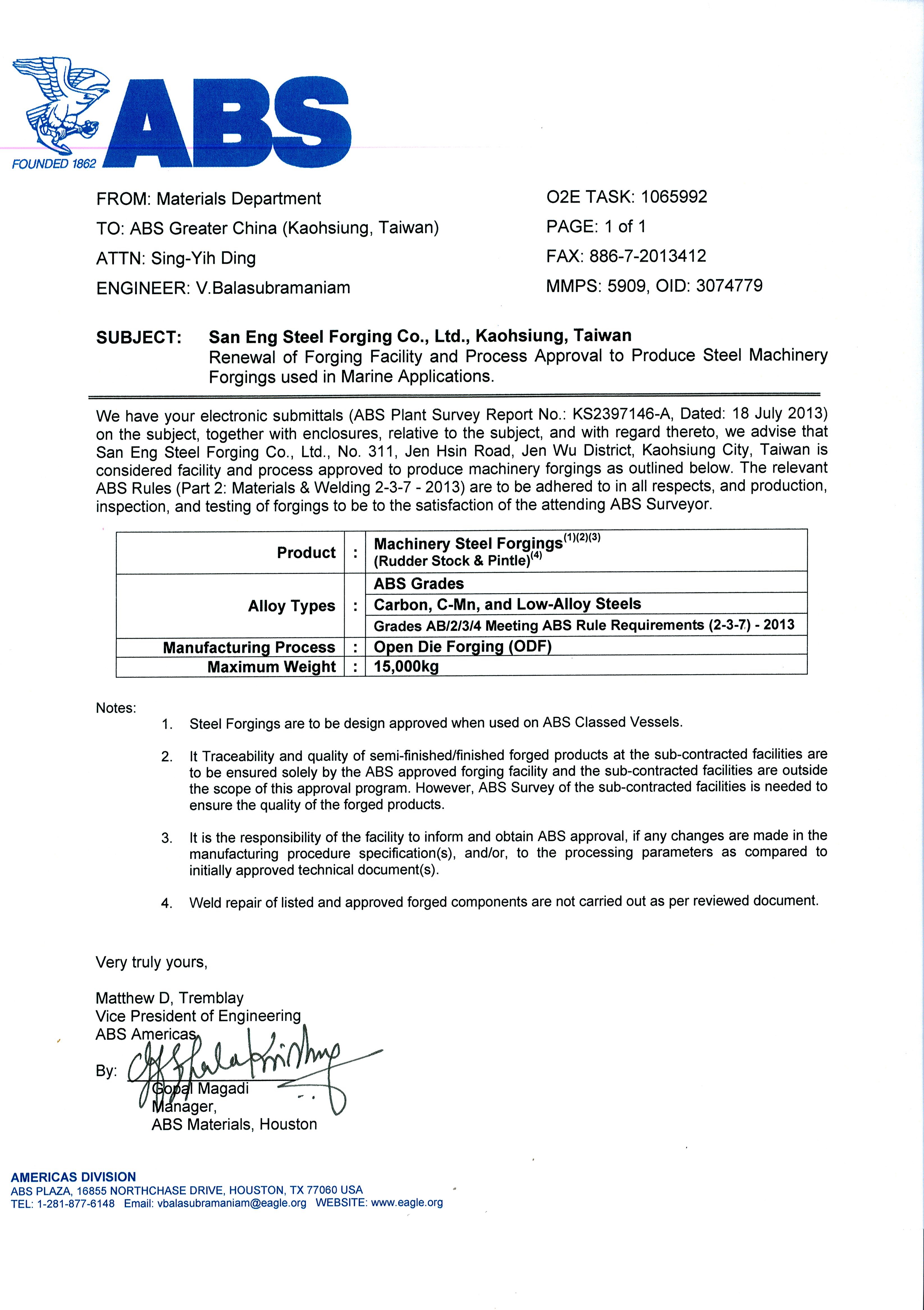 - Approval from American Bureau of Shipping